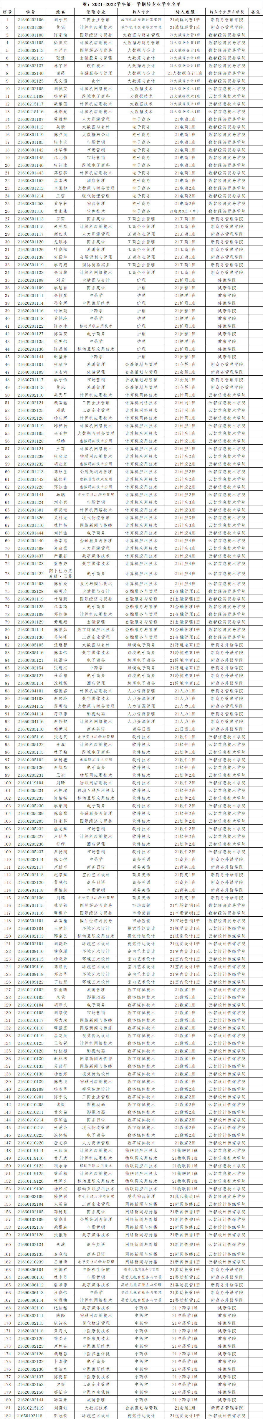 根据《普通高等学校学生管理规定》(教育部令第41号)第二十一条和《广州华南商贸职业学院学生学籍管理规定》第九条之规定,经学生申请、二级学院审核、教学科研部复核、校领导审批,同意刘子熙等182名学生转专业申请并予以公示(具体名单详见附件)。公示期:2021年12月6日—12月10日,公示期内如有异议,请向教学科研部据实反映。