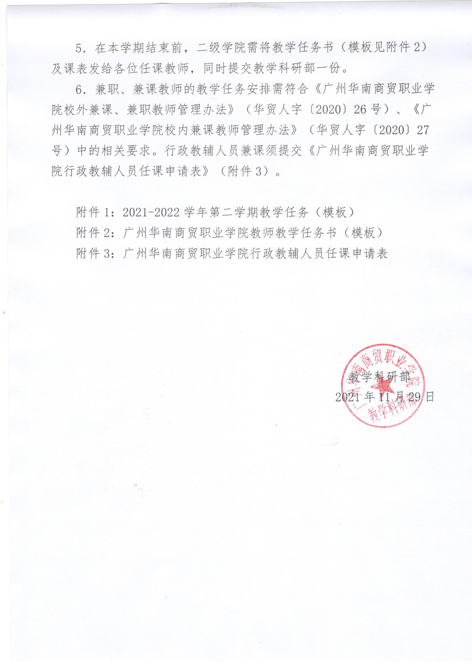 关于做好2021-2022学年第二学期教学任务安排的通知