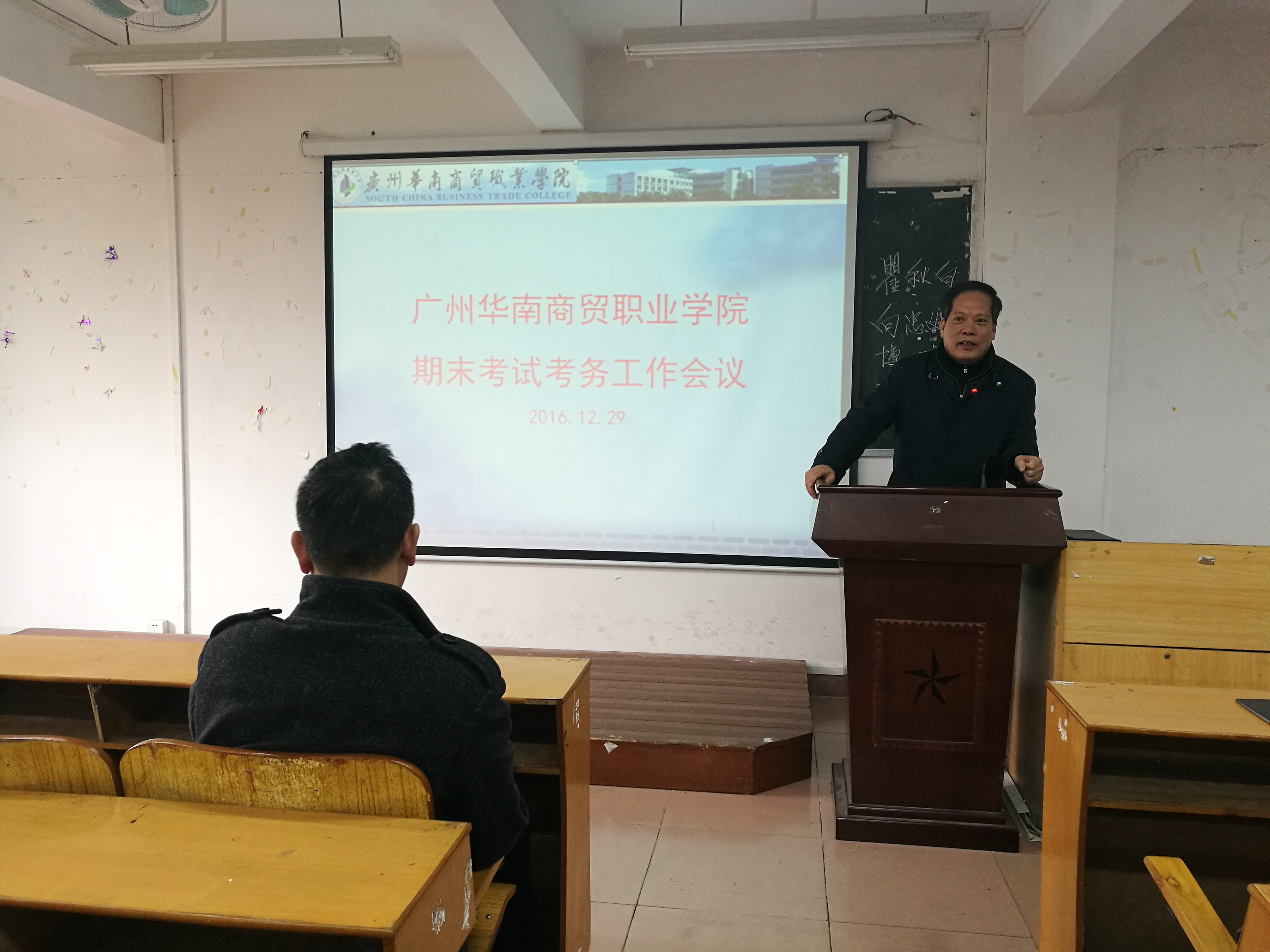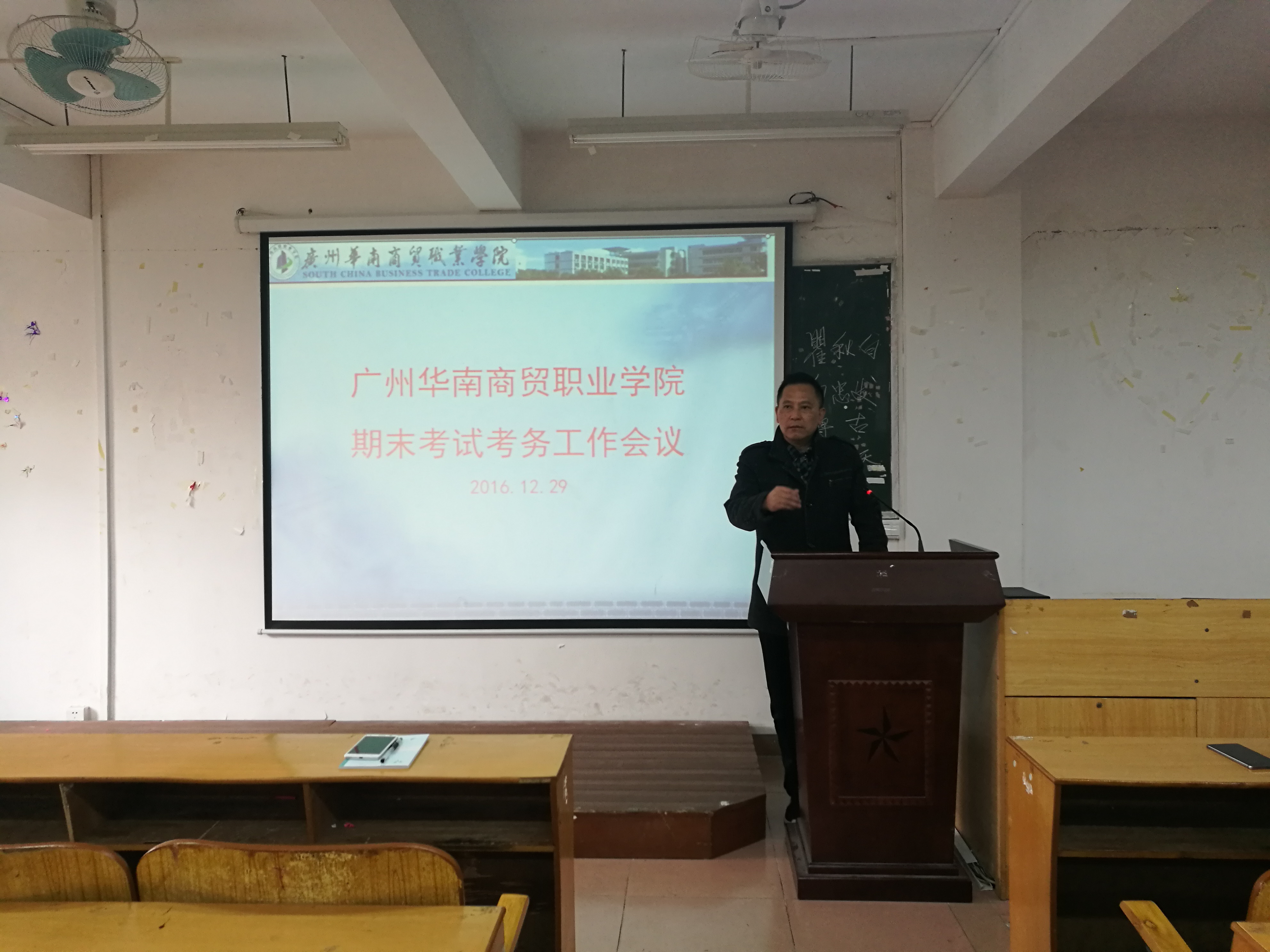学院期末考试将于元月3、4、5日进行,为加强考试管理,严肃考场纪律,端正考风、学风,营造良好的考试氛围,12月29日教务处组织全体监考教师和考务人员召开了学院期末考试考务工作会议。学院领导高度重视此次考试工作,黄伦生院长、袁再华副院长参加了会议,并做出重要指示。