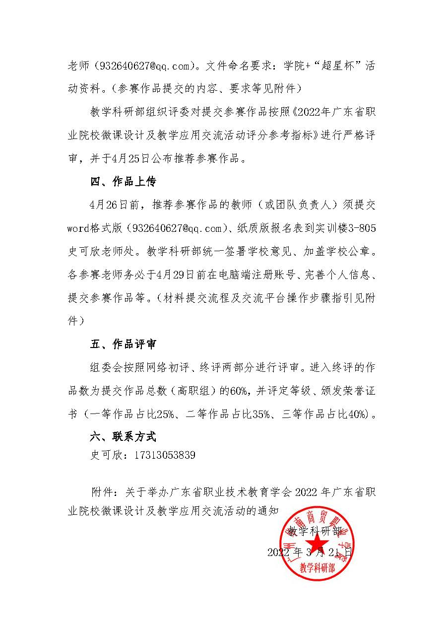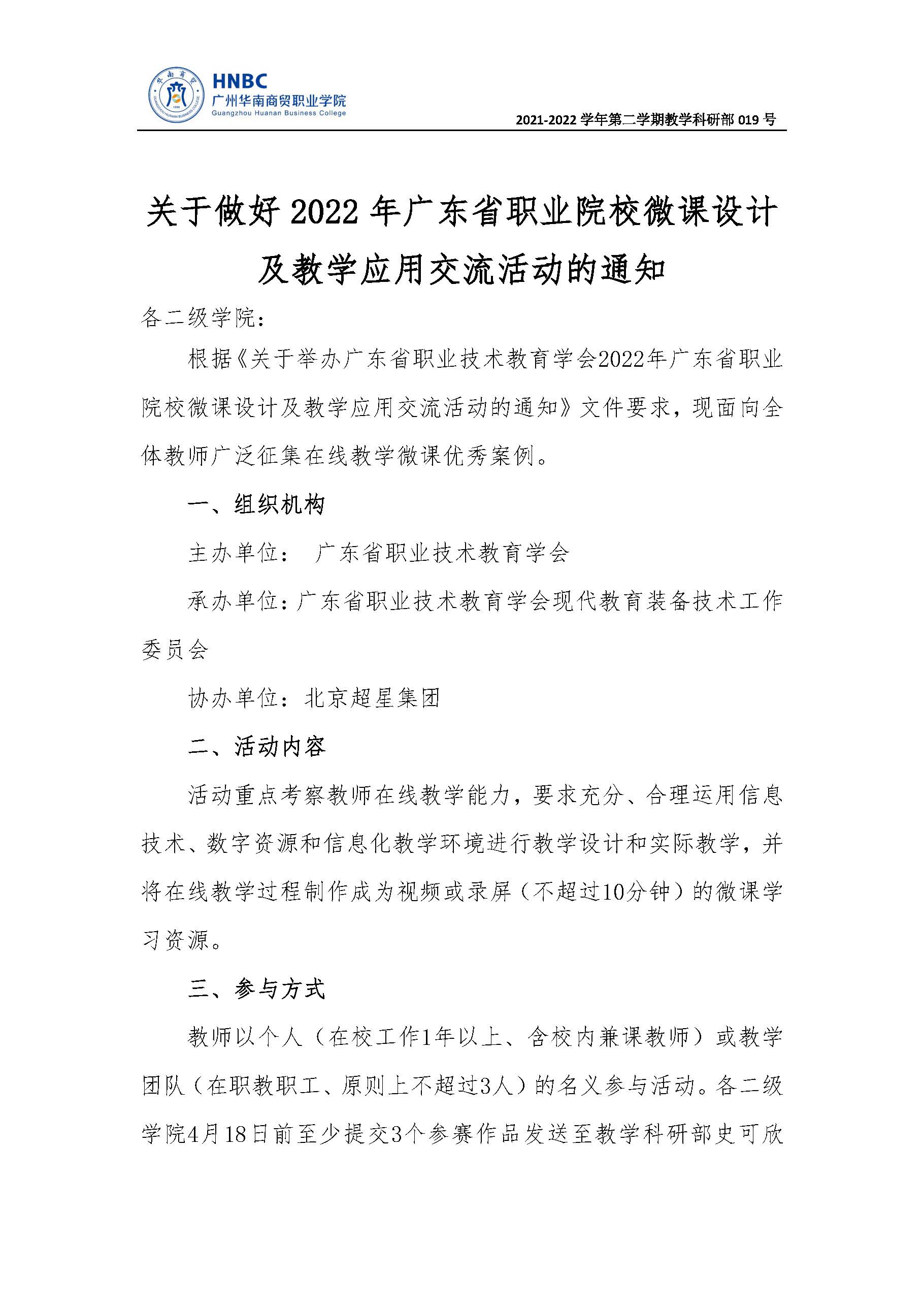 教学科研部019号-关于做好2022年广东省职业院校微课设计及教学应用交流活动的通知