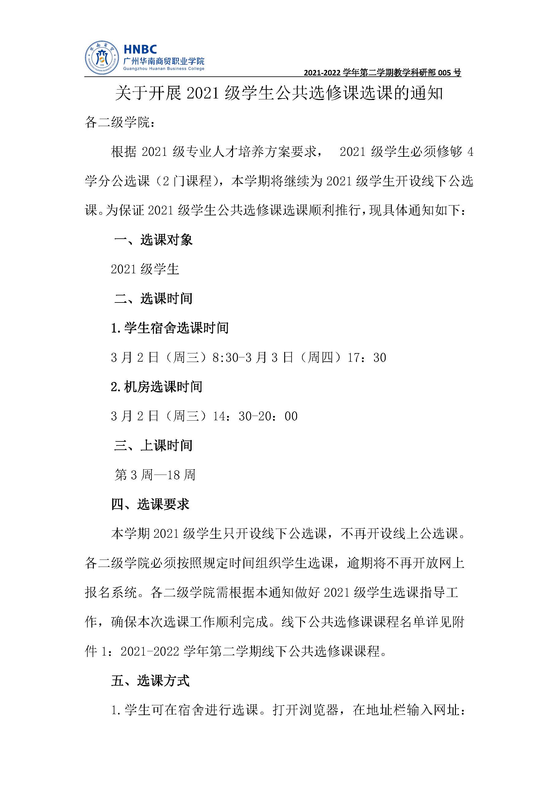 关于开展2021级学生公共选修课选课的通知
