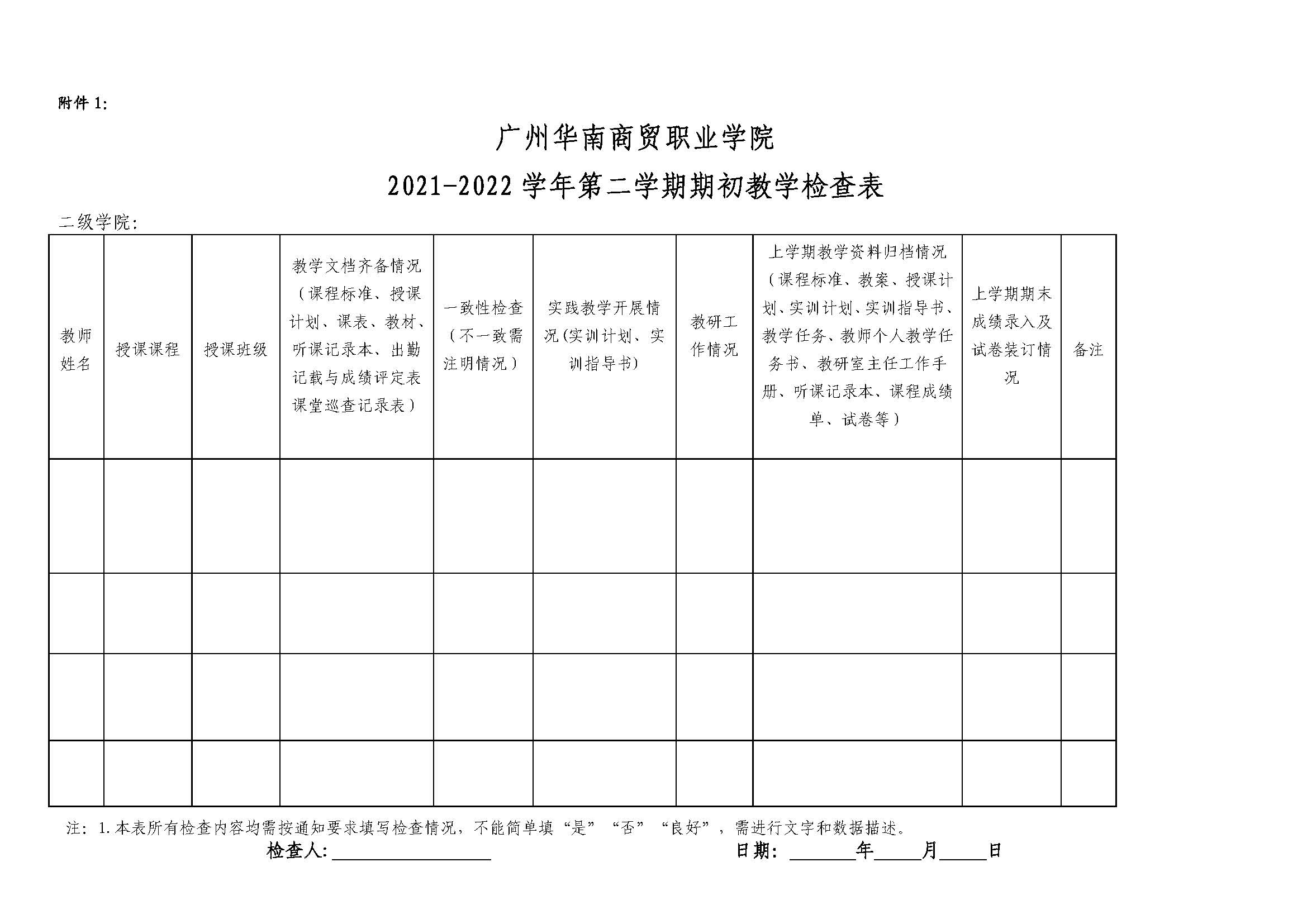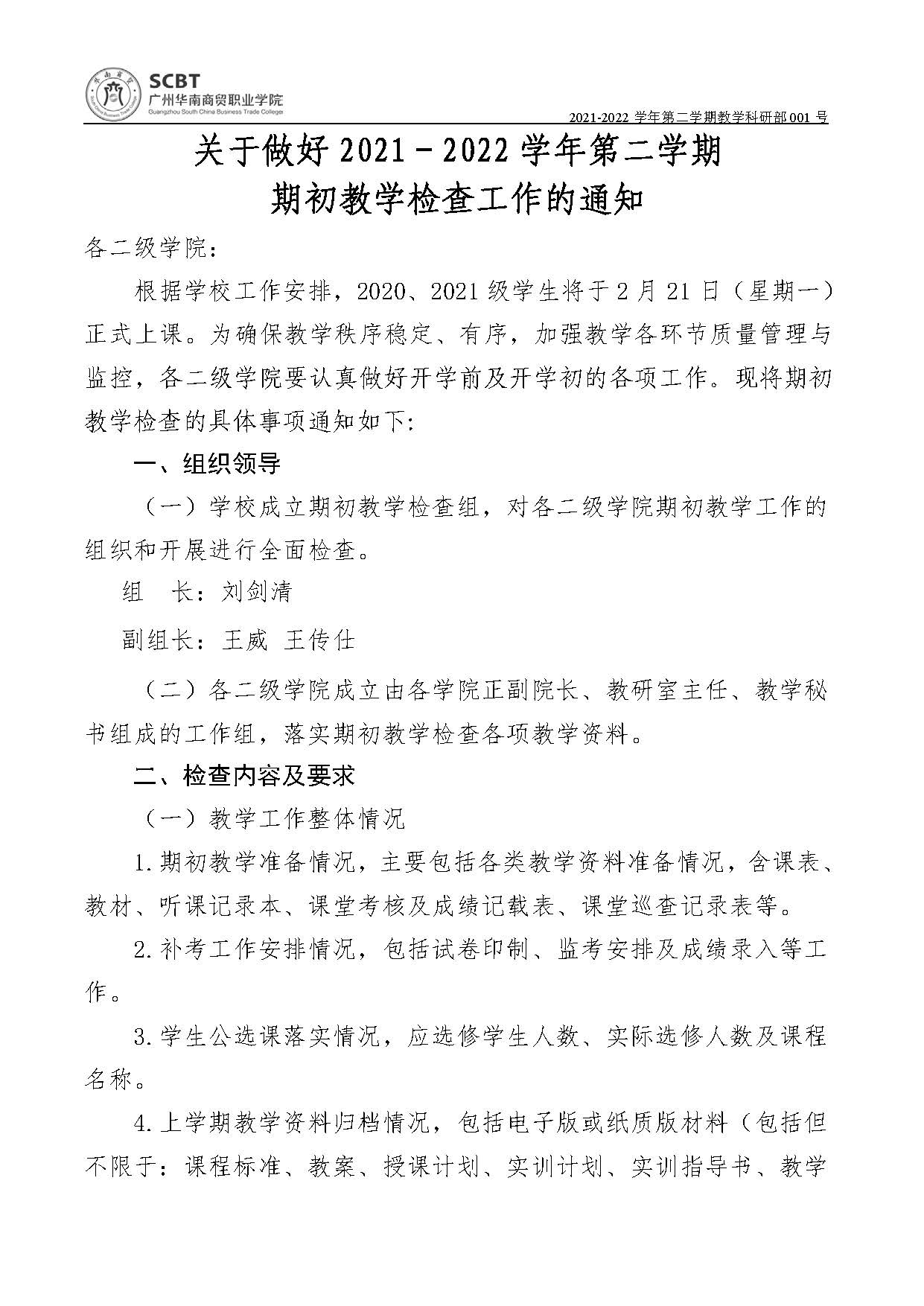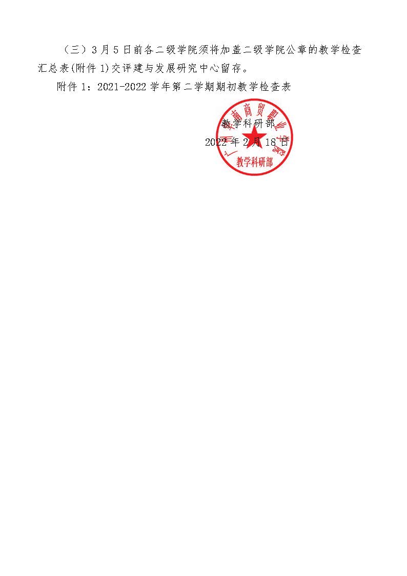 教学科研部001-关于做好2021-2022学年第二学期期初教学检查的通知