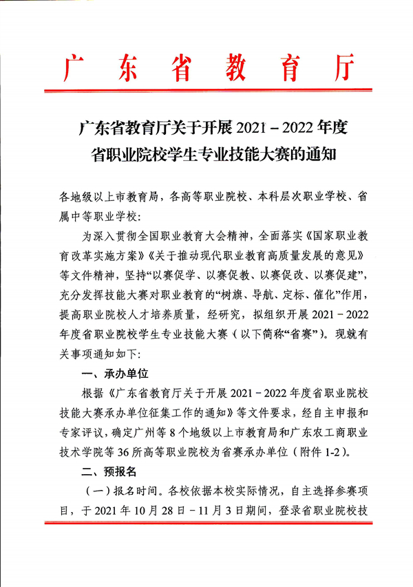 广东省教育厅关于开展2021-2022年度省职业院校学生专业技能大赛的通知