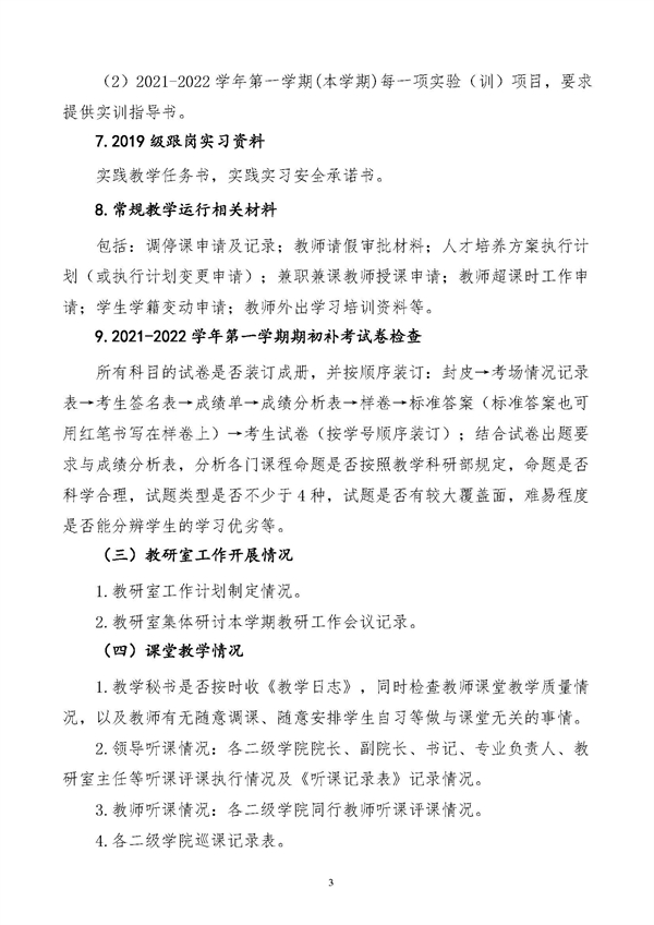 关于开展2021-2022学年第一学期期中教学质量检查工作的通知