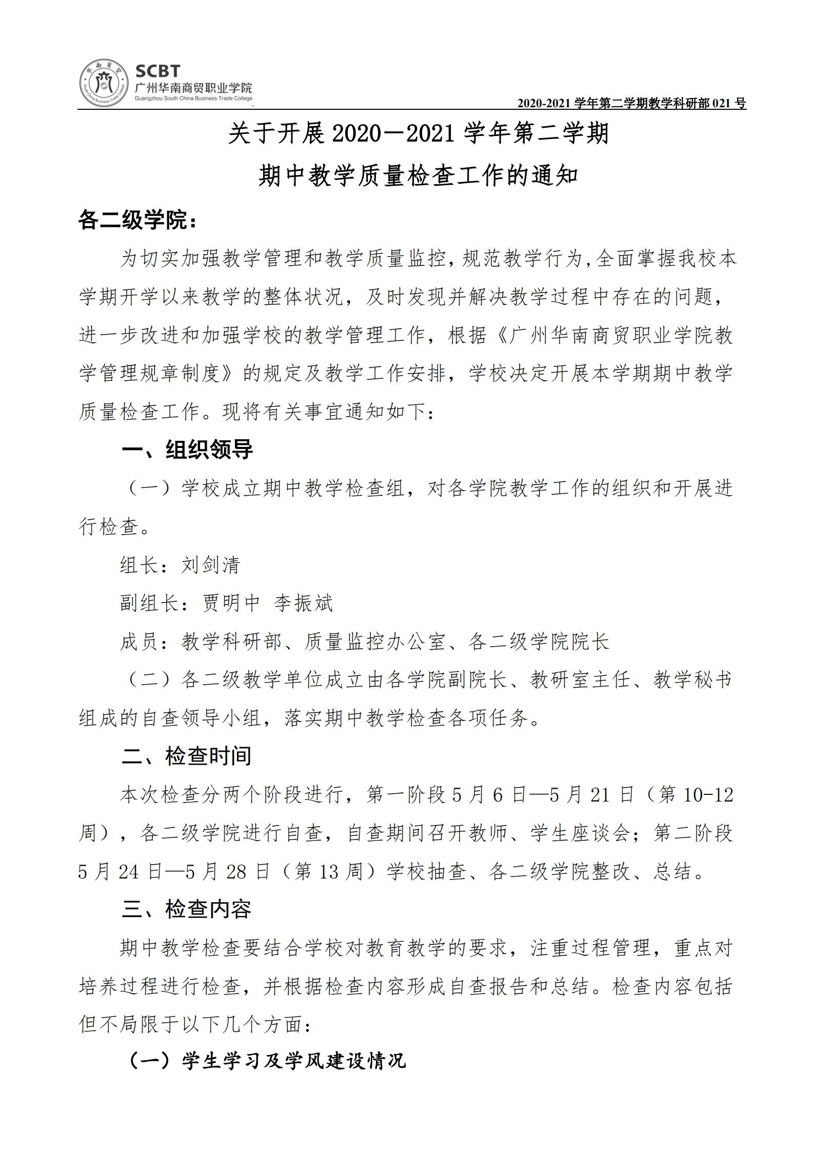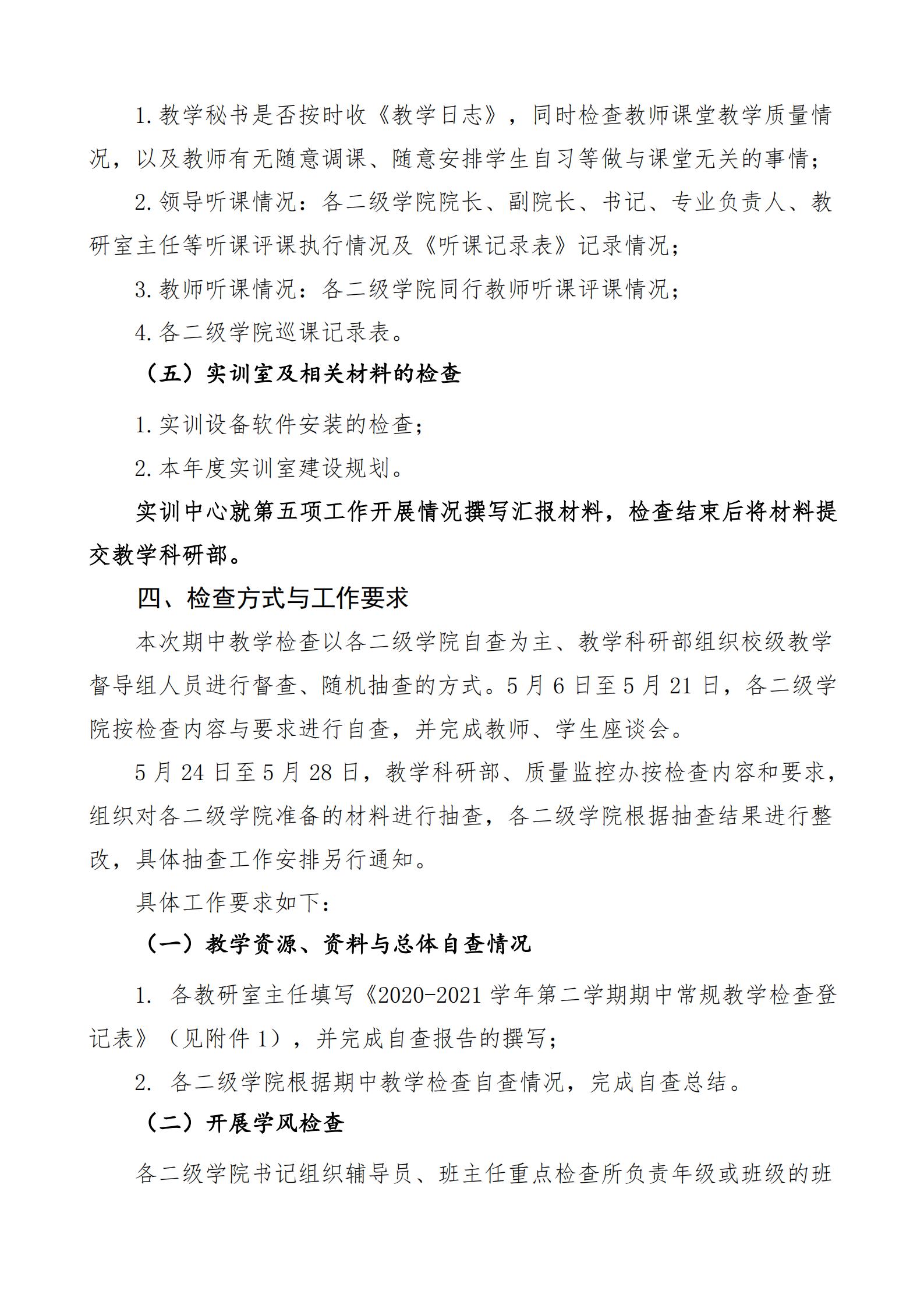 关于开展2020-2021学年第二学期期中教学质量检查工作的通知
